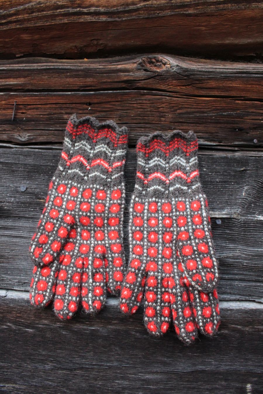 #259: Finely Knitted Estonian Lady’s Gloves in Risti Style in Red and Natural Kihnu Island White and Brown Sheep Yarn